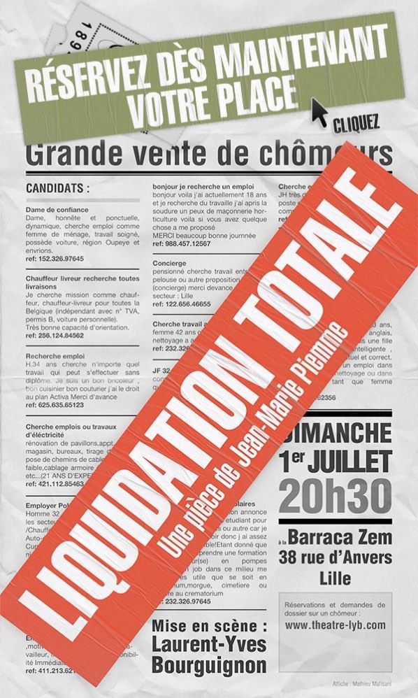 Grande vente de chômeurs le 12 mai. Mesdames et messieurs les acheteurs, venez nombreux découvrir les bonnes affaires !